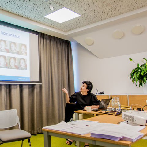 Prednášala nám PhDr. Kateřina Thorová, Ph.D. prvá česká psychologička, ktorá sa špecializuje na prácu s deťmi s poruchami autistického spektra a má dlhoročné skúsenosti v tejto oblasti.