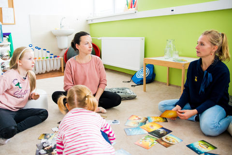 Niekoľkokrát ročne sa u nás v centre stretávajú rodičia a deti s Downovým syndrómom, naše „slniečka“. Na stretnutiach si precvičujeme jemnú motoriku, spievame si a hráme na hudobných nástrojoch.